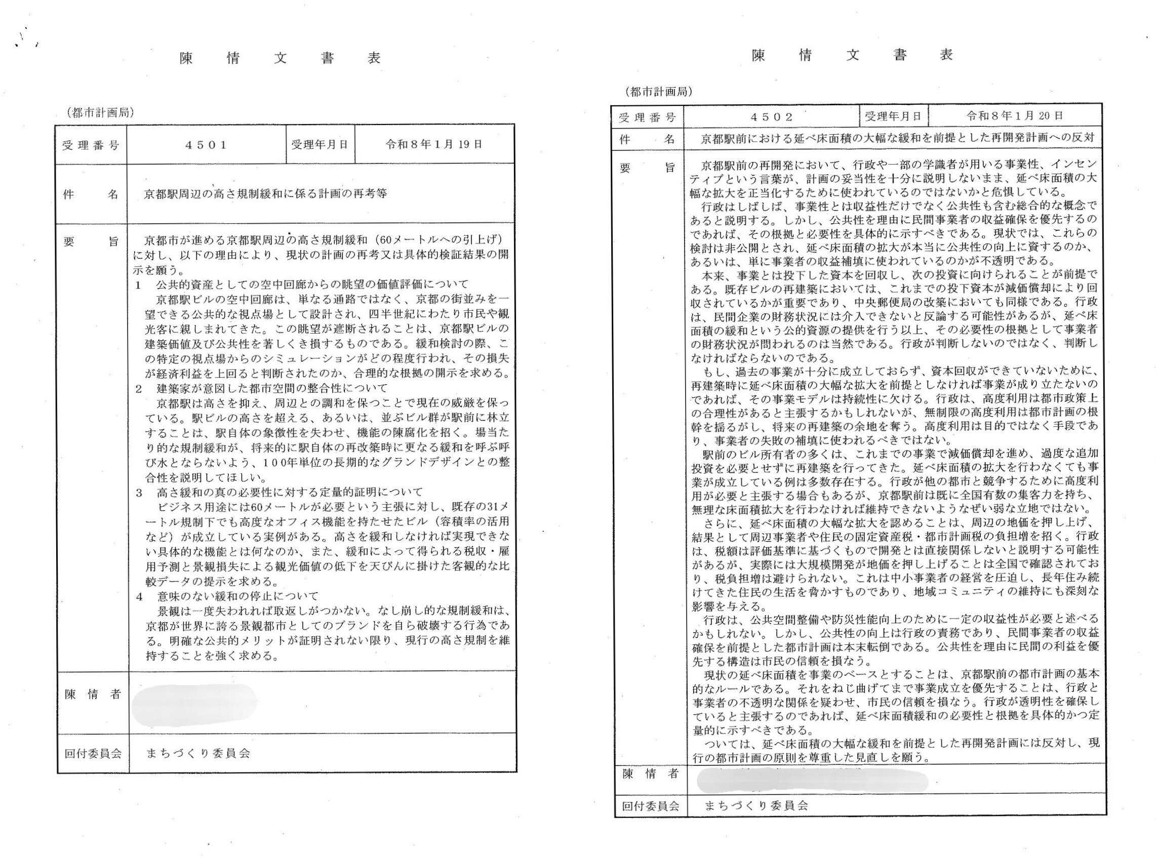 2026年2月18日【まちづくり委】都市計画局/陳情審査「京都駅周辺の高さ規制緩和に係る計画の再考等」「京都駅前における延べ床面積の大幅な緩和を前提とした再開発計画への反対」